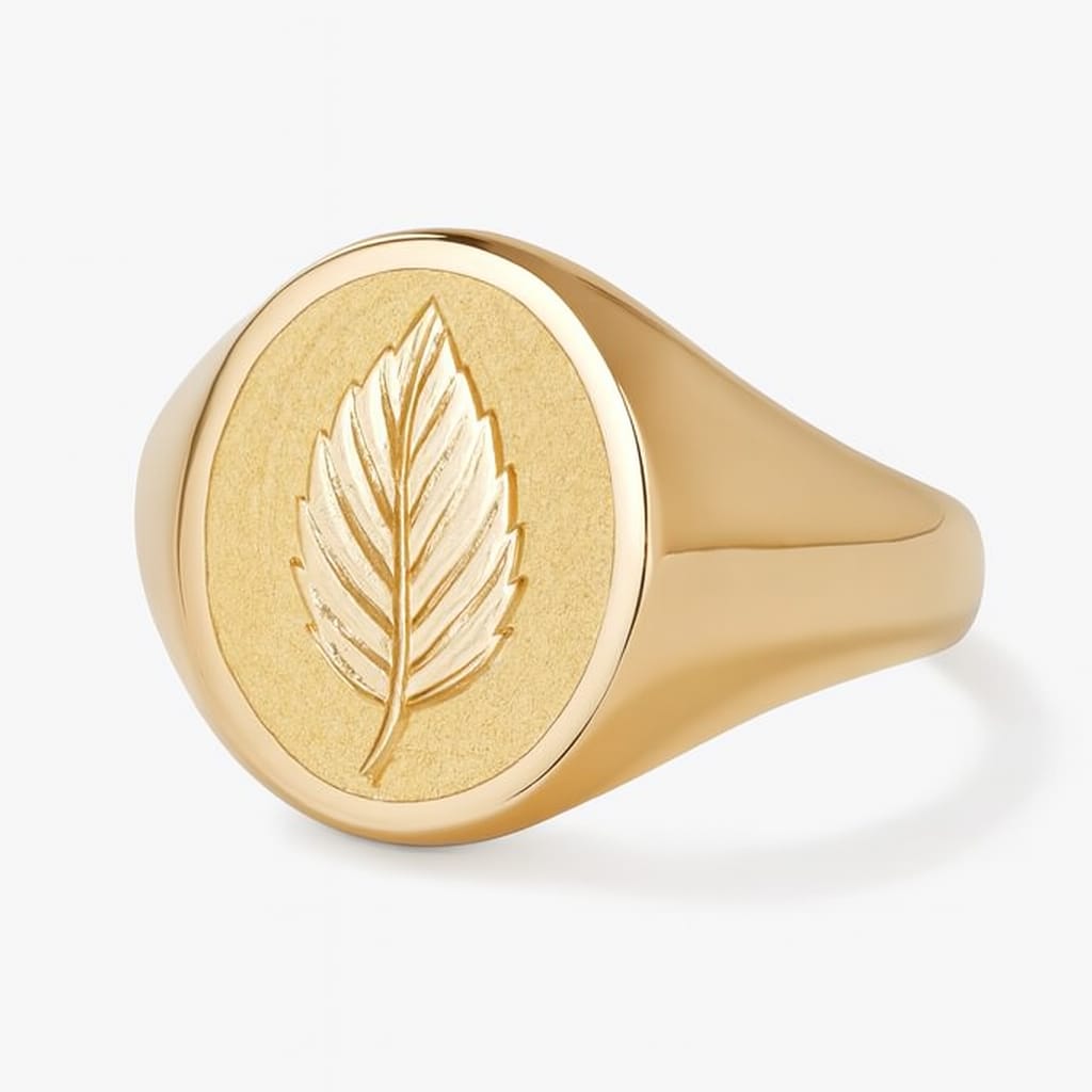 In a city of concrete and ambition, this ring brings nature’s quiet wisdom to your fingertips.Crafted in solid 14K gold, the Leaf Signet Ring features a symmetrical leaf design—etched with delicate veins and centered on a polished circular face. It’s a tribute to balance, growth, and understated elegance, designed for men who lead with clarity and live with intention.
