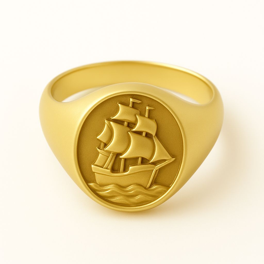 Begin your journey with our 14K gold nautical signet ring. This bold piece captures the fearless spirit of explorers and naval commanders. Our artisans designed this solid gold ring for men who lead with vision, courage, and direction.
