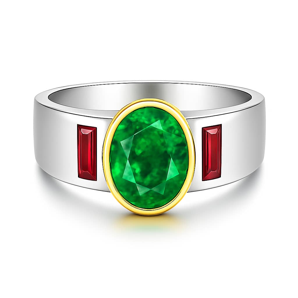Even with the rectangular ruby accent, the ring remains comfortable for daily wear. The emerald ring with rectangular ruby pairs perfectly with casual outfits, business attire, or formal events. Its polished gold band ensures durability while keeping the focus on the gemstones. The men’s round emerald gold ring is versatile, stylish, and wearable for any occasion.