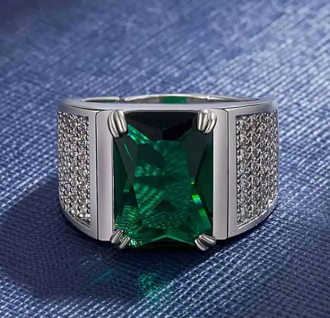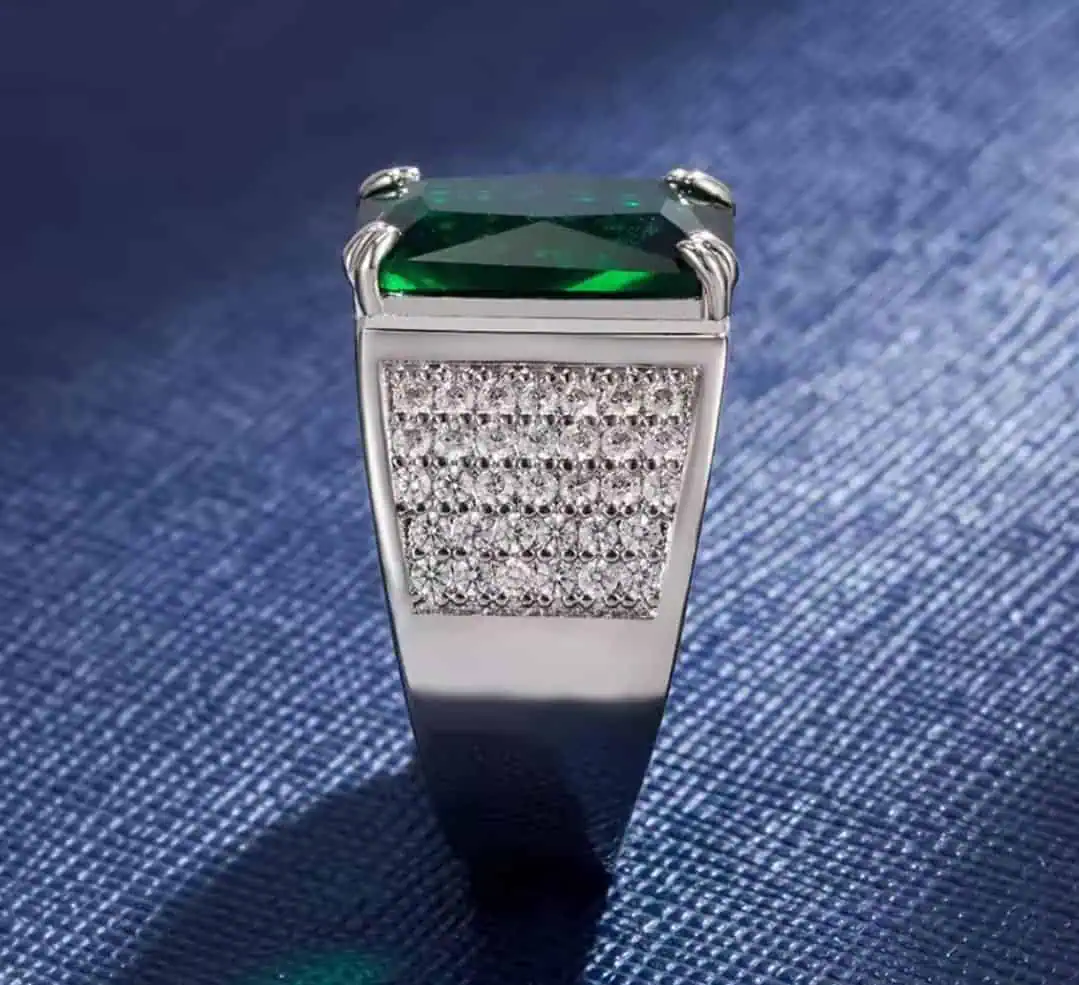 Its masculine form makes it suitable for modern men who appreciate jewelry with character. The sleek geometry and gemstone arrangement create a confident and fashionable statement, aligning perfectly with both formal and casual outfits. This emerald gemstone ring effortlessly upgrades your personal style by combining traditional gemstone charm with contemporary men’s fashion.