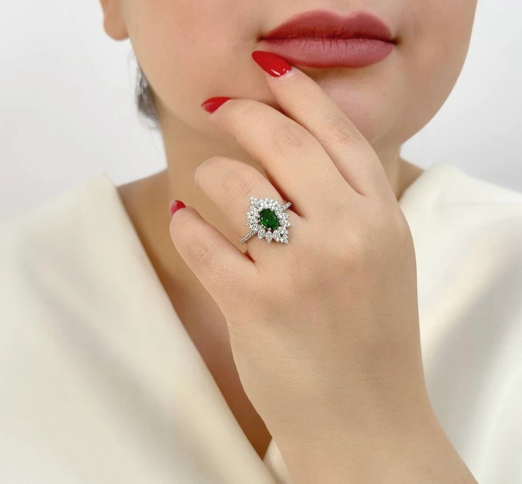 Every detail, from the shine of the gold to the smooth polish of the emerald, reflects exceptional artistry. The soft curves resemble real flower petals, making this piece an instant favorite among jewelry lovers.