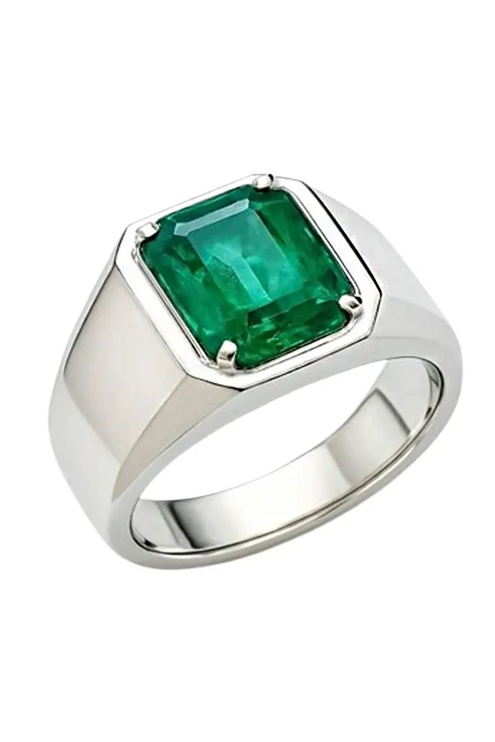 This men’s emerald ring is crafted for men who value simplicity and strength in design. The square emerald cut gives the ring a sharp, masculine character, while the gold band adds warmth and elegance. Its minimal design makes it easy to match with both casual outfits and formal suits.