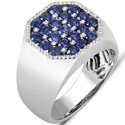 Men’s Sapphire & Diamond Ring 18K White Gold – Model RGM1611