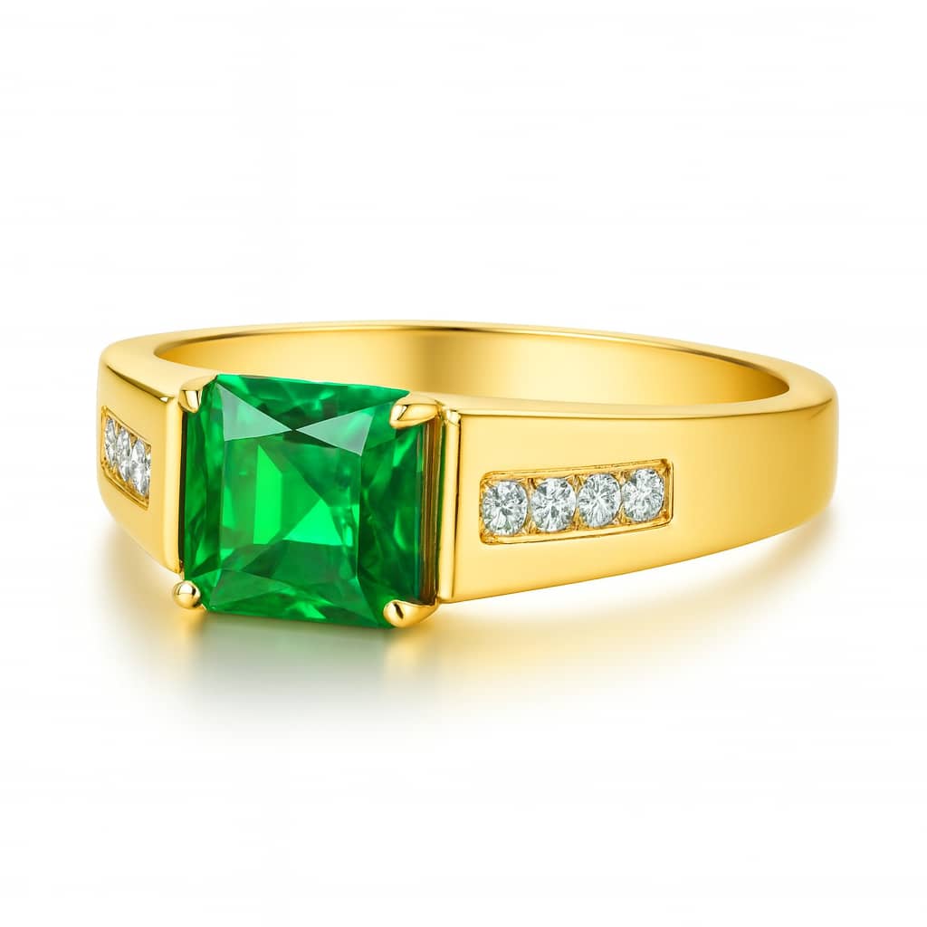 The square emerald gold ring for him focuses on geometry and proportion. Designers avoid unnecessary decoration and let the square emerald do the work. Light reflects cleanly off the polished gold, enhancing the stone’s deep green color.