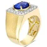 Given that men tend to have a unique taste when it comes to gemstone jewelry, the combination of sapphire and diamond aligns perfectly with their preferences. Sapphire and diamond have long been used in men’s jewelry. The deep, captivating blue of the sapphire stands out even more against the yellow gold of the ring.