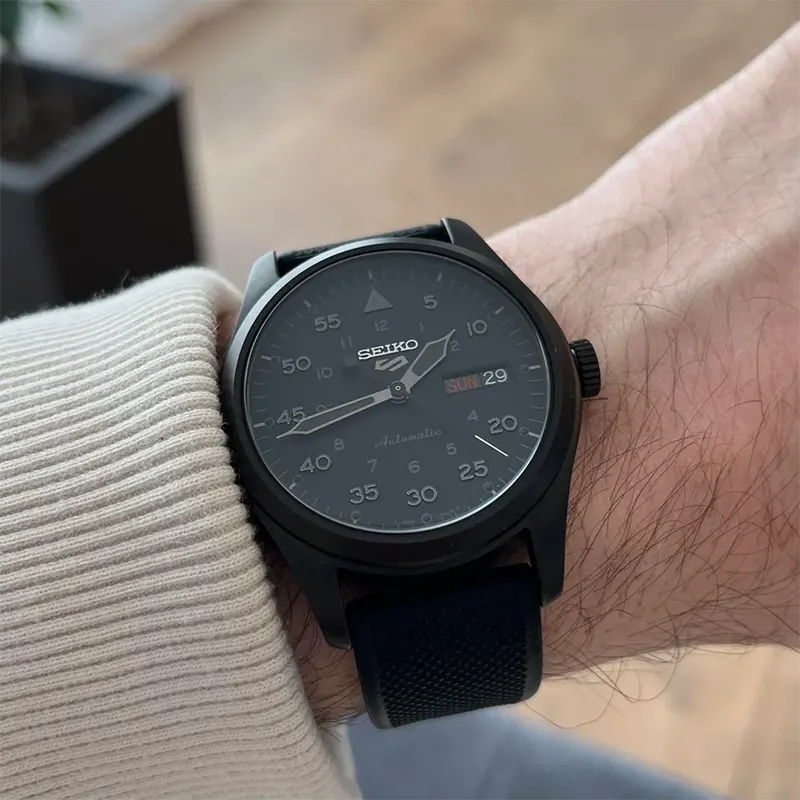 Seiko Men’s Watch 5 – Model SRPJ11K1 is a desirable combination of stylish design and modern features. This watch with detailed details and high quality hemp strap, automatic movement and water resistance up to 10 atmospheres, attracts the attention of every person. The strap of this watch is made of high quality hemp, which has high resistance and longevity. This band is also hypoallergenic, which prevents any skin sensitivity. The automatic movement of this watch provides accurate performance without the need to change the battery. This feature allows mechanical watch enthusiasts to experience advanced technology. The hemp strap of this watch is designed with a steel belt lock to easily fit on your wrist and provide you with a comfortable feeling. The watch frame is made of quality materials that prevent water penetration and provide moisture and water resistance. The watch is equipped with a precise and advanced mechanism that guarantees the accuracy of time display.