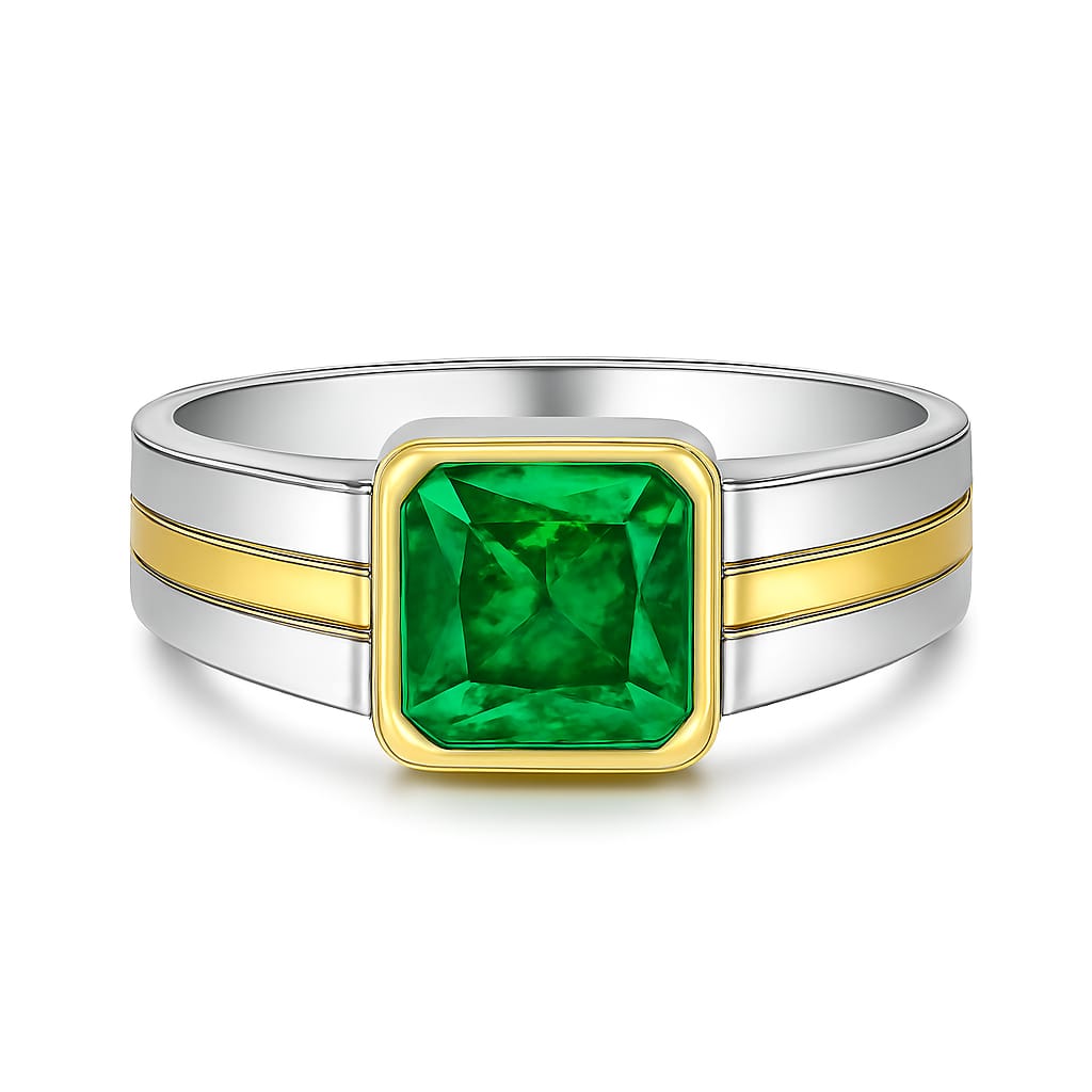 Craftsmen merge white and yellow gold with precision, polishing the surface to a smooth shine. The two-tone gold emerald ring for men feels substantial yet comfortable, sitting perfectly on the hand. Emerald’s rich green color contrasts beautifully with the two metals, catching light at every angle.