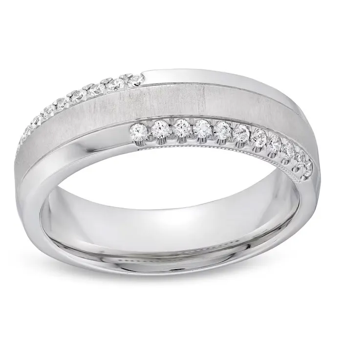 In addition, the polished finish gives the band a sophisticated shine, while the diamonds provide fire and brilliance.