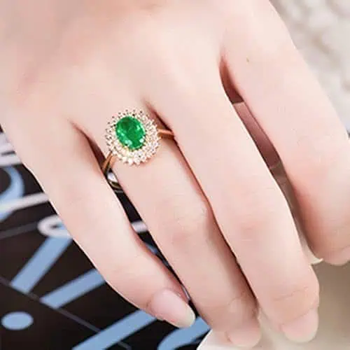 The ring’s design can take many forms, from traditional solitaires featuring a single emerald surrounded by diamonds to elaborate vintage-inspired designs that showcase intricate detailing and unique metalwork. Each ring tells a story, reflecting the personality and taste of its wearer, making it not simply an ornament but also a symbol of personal identity and style.