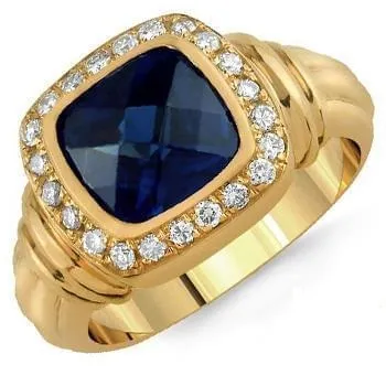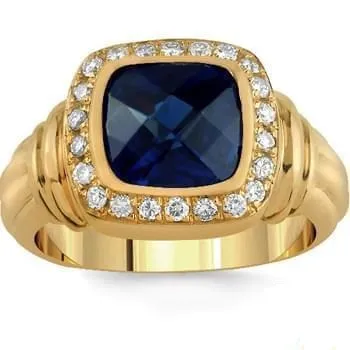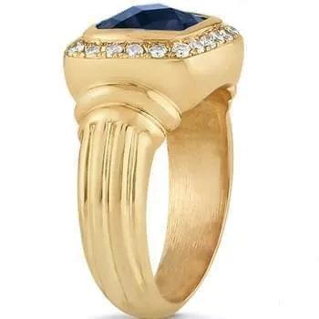 Luxury Men’s Yellow Gold Ring with Blue Sapphire & Diamonds RGM1570